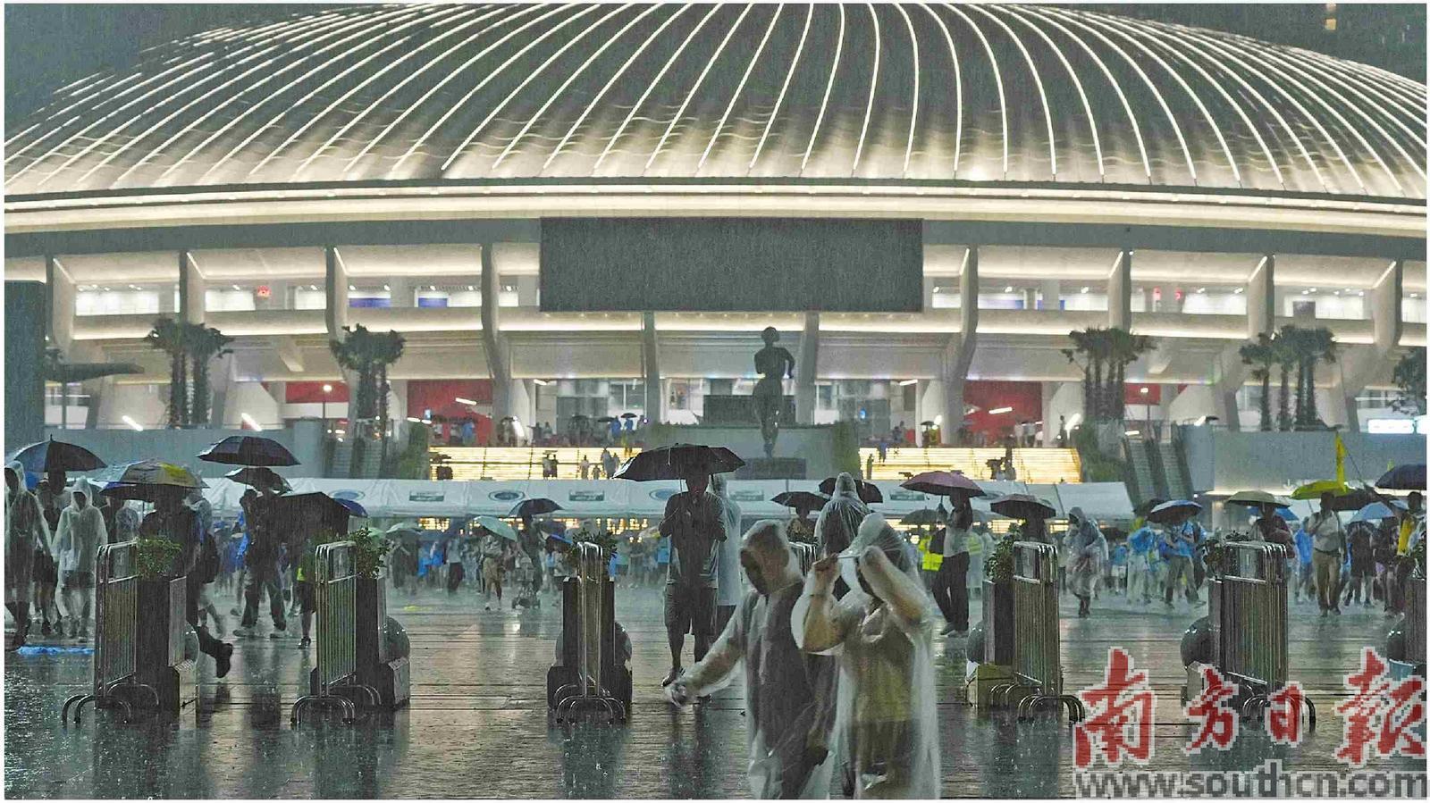 7月19日晚,受台风“韦帕”影响,深圳市区下起了暴雨。大量刚看完女篮亚洲杯和中超深圳新鹏城比赛的市民冒雨离场回家。南方日报记者 姚志豪 摄