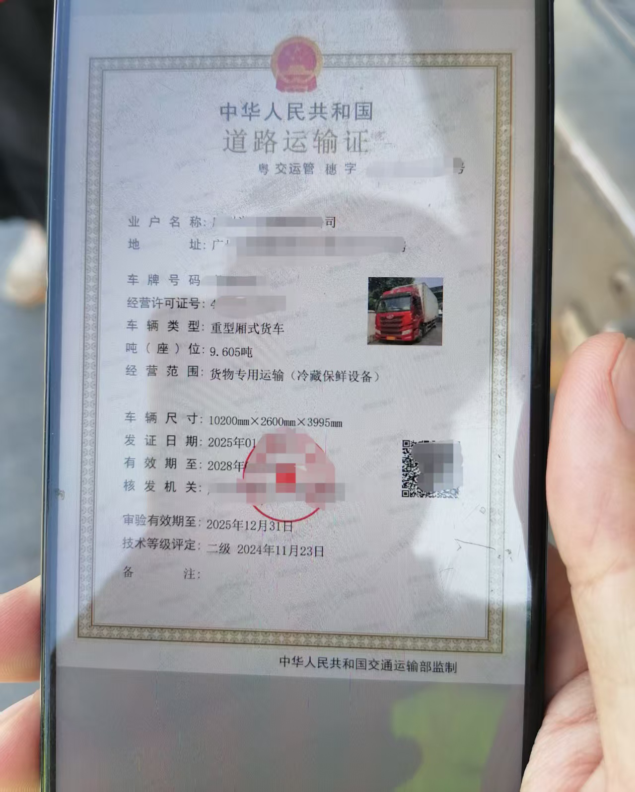 执法当日,执法人员根据线索在江高收费站对粤A*****重型厢式货车进行检查,核查司机出示的《道路运输证》时,发现该车营运证信息已注销,与所持证件不符。